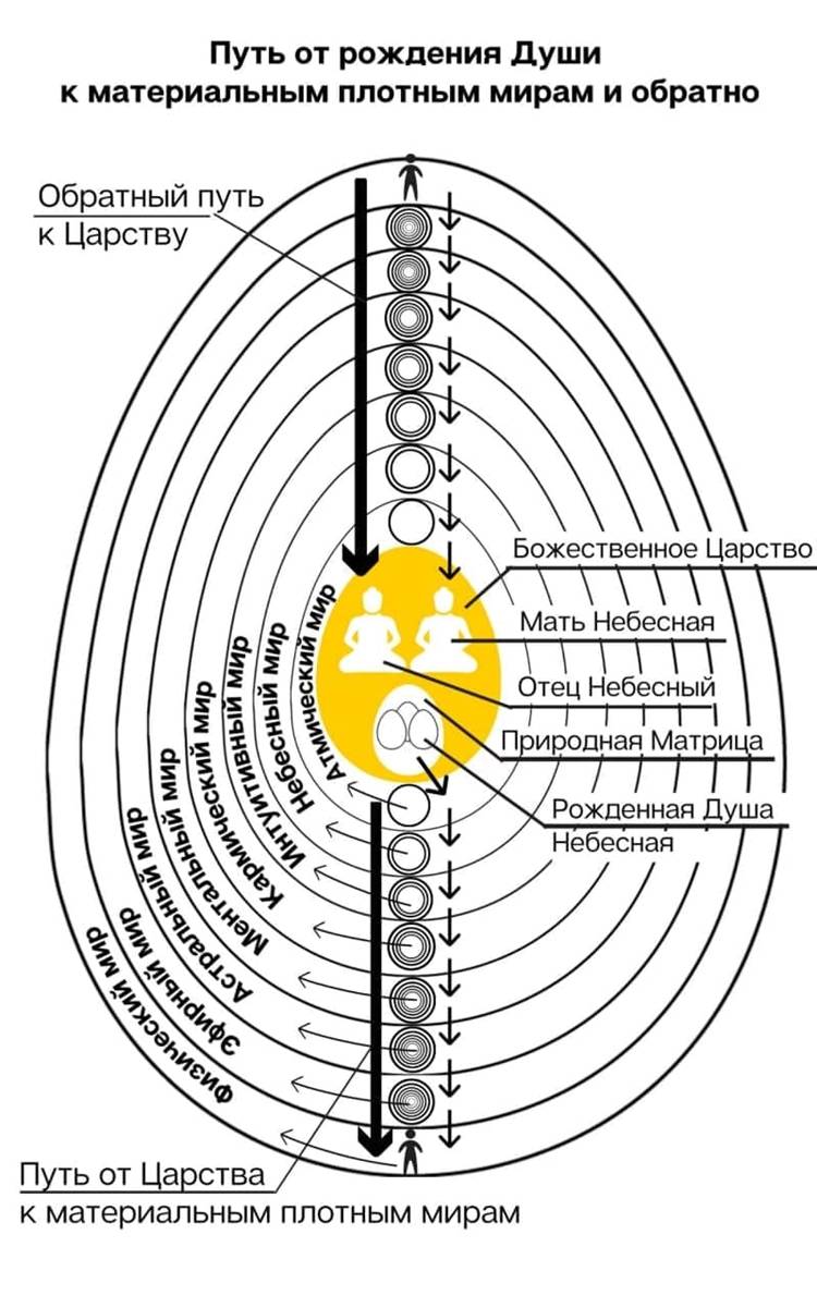 3.3.1. Путь Небесной Души с момента рождения лежит, от центра Вселенной до окраин Вселенной в физические миры и, обратно, в центр Вселенной, в Обитель Небесных Родителей.