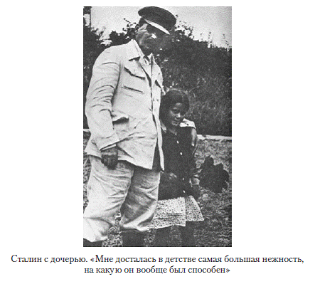 Сталин тяжело переживал самоубийство жены, и, как вспоминал Рыбин, его телохранитель, по ночам охрана нередко сопровождала его на её могилу. Светлана, в шестилетнем возрасте оставшаяся без матери, была его душевной опорой – только ей он писал нежные письма.