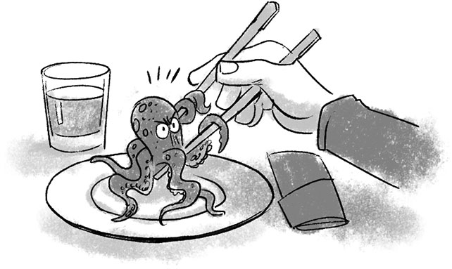 – Ей попался осьминог, – прокомментировал Нэт. – На тарелке он притворялся мертвым, а попав в желудок, начал поедать человека изнутри.