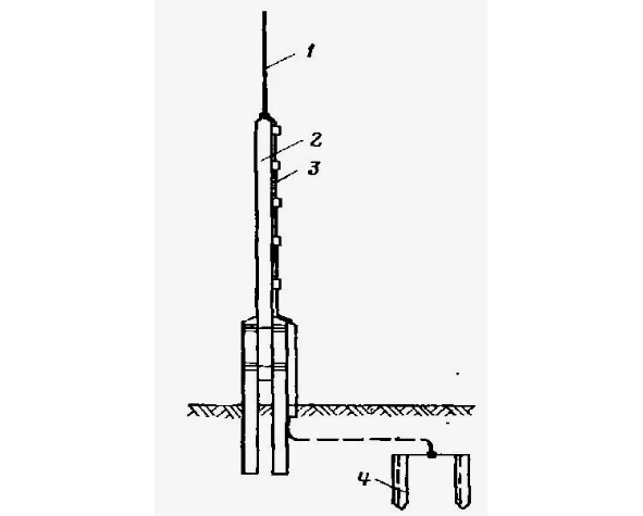 1-яшин қабул қилувчи; 2-кўтарувчи конструкция; 3-ток ўтказувчи (қочирувчи); 4- ерлатгич (ерга улагич).