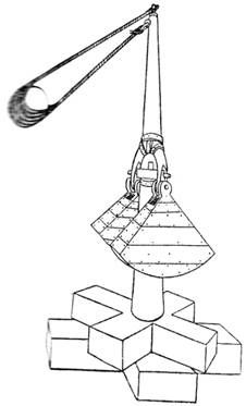 Примечание. Когда оружие приводилось в вертикальное положение его противовесами, камень должен был выбрасываться из пращи. См. рис. 212, стр. 310.