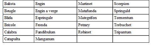 Несмотря на то, что конструкции этих машин различны и один вид метает камни, а другой стрелы, их названия так бездумно использовались многими средневековыми, а также более поздними писателями, что часто невозможно сказать, машину какого класса автор имеет в виду.