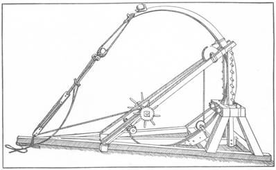 Рис. 184. Маленькая катапульта на колесах для использования в качестве легкой полевой артиллерии.