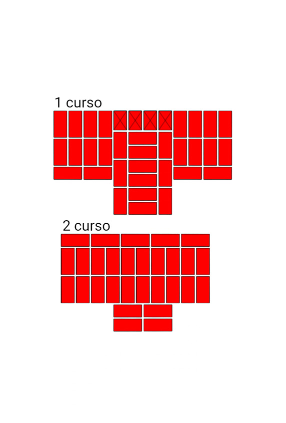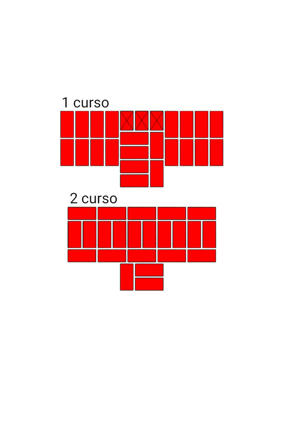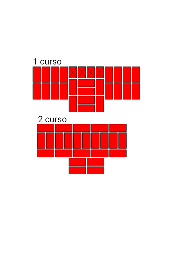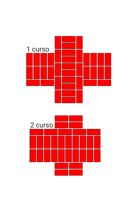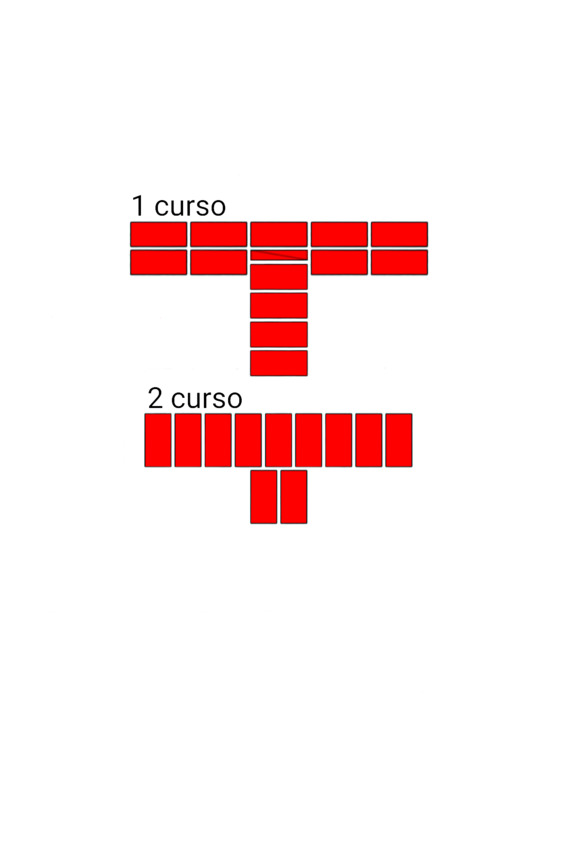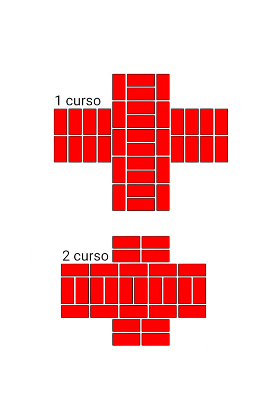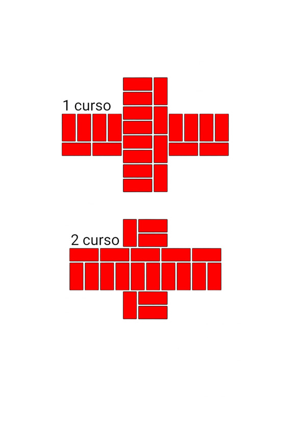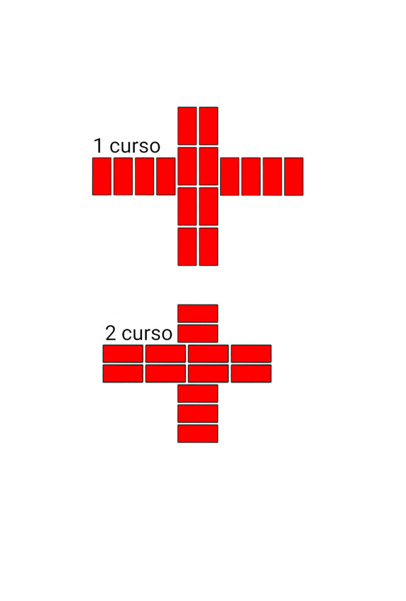 Fig.24. El orden de colocar ladrillos en la intersección de las paredes. El espesor de las paredes es de 2 y 2 ladrillos.