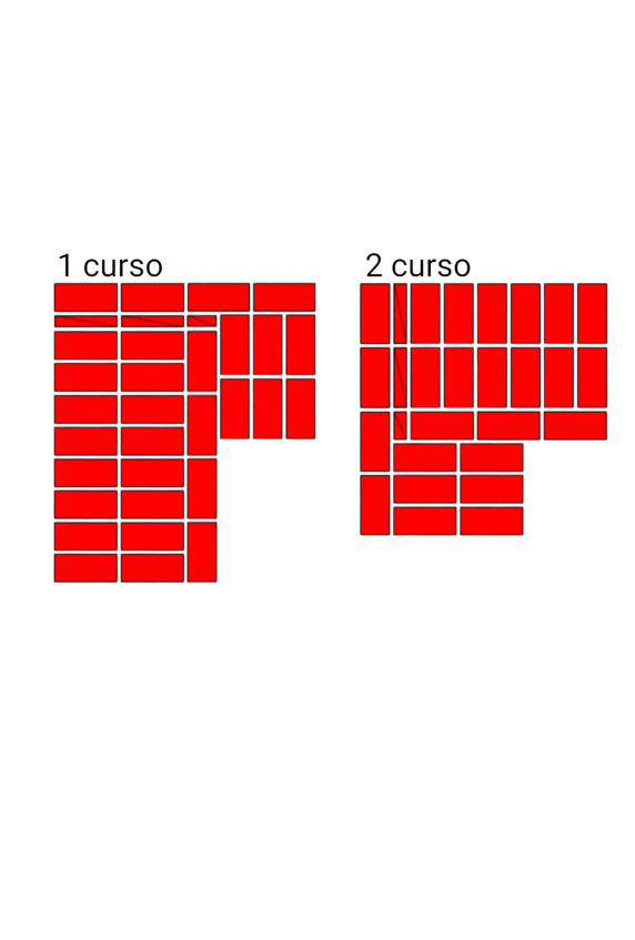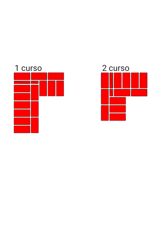 Fig.16. El orden de colocar el ladrillo en las paredes adyacentes. El grosor de las paredes es de 1.5 y 1 ladrillos.