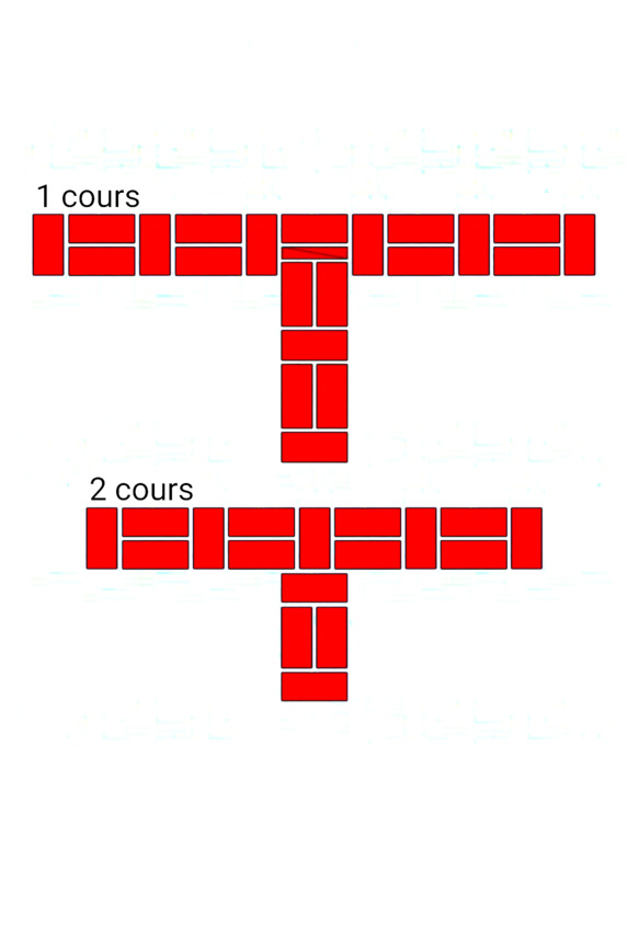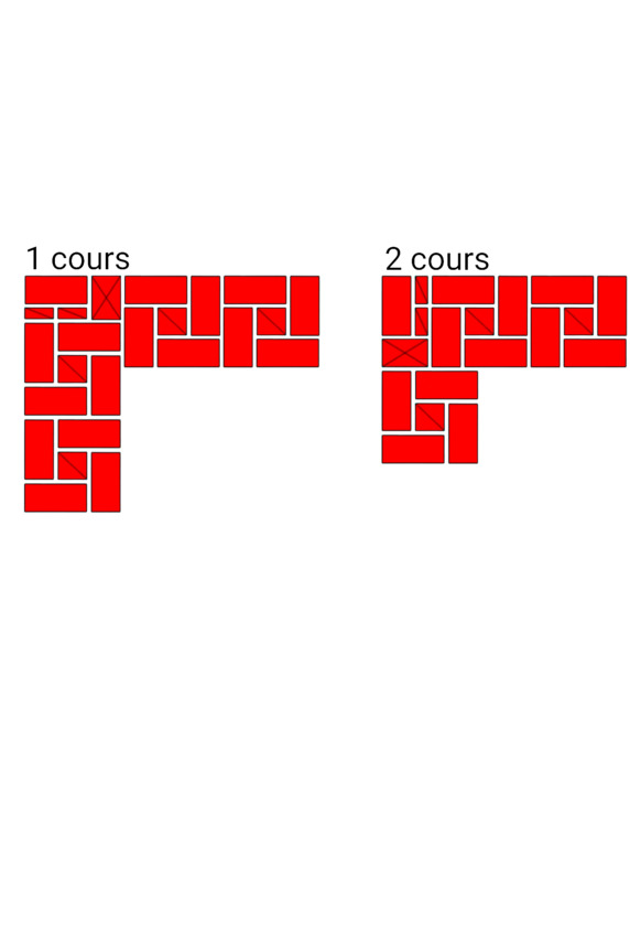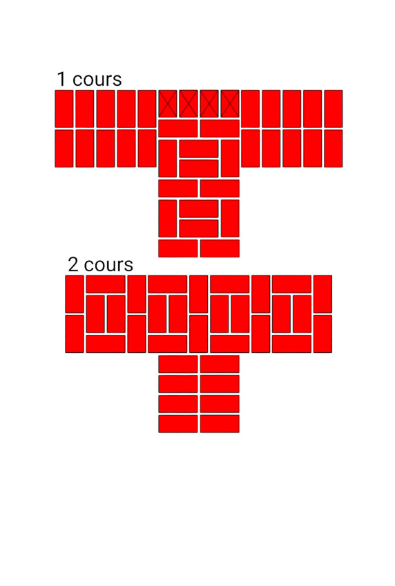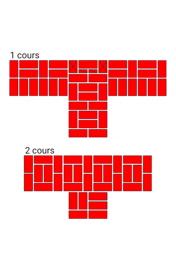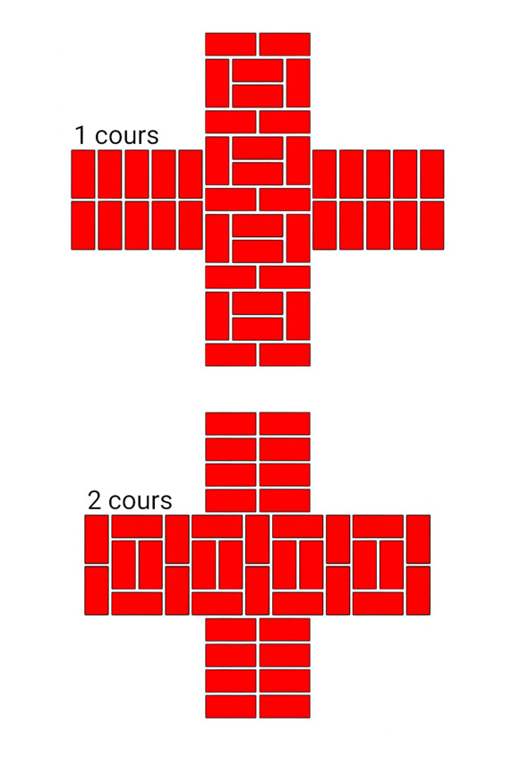 Fig.24. L’ordre des briques à l’intersection des murs. L'épaisseur des murs est de 2 et 2 briques.