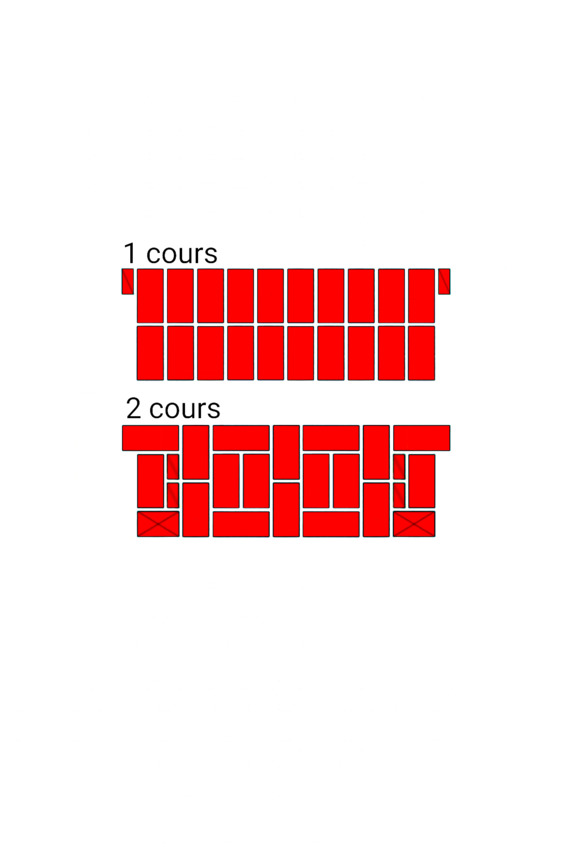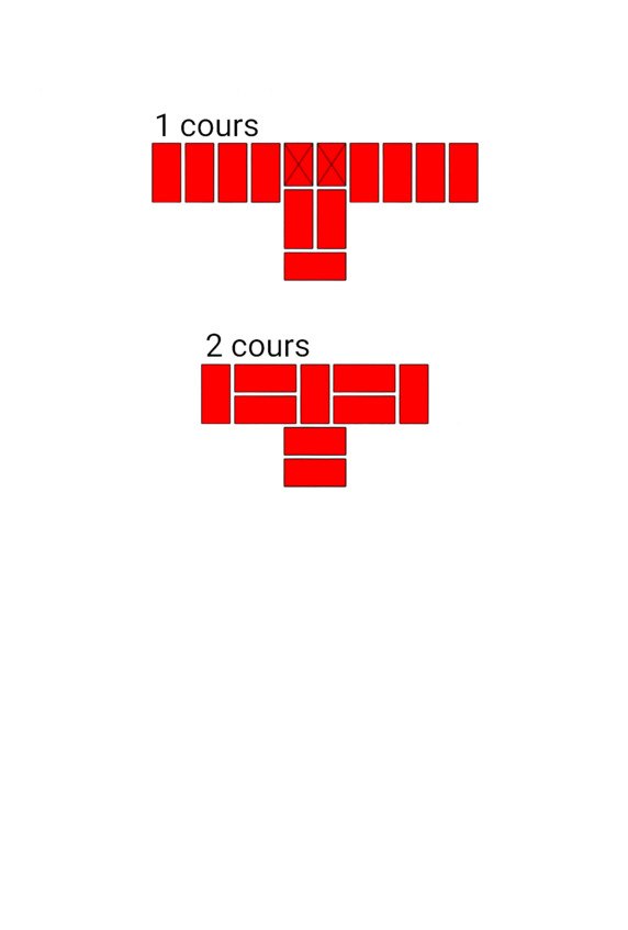 Fig.8. L’ordre de pose des briques dans une section de murs à restriction verticale. Épaisseur de paroi 2 brique.