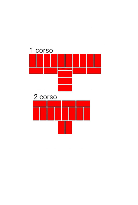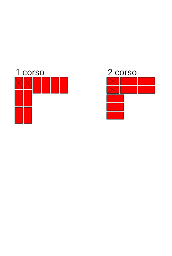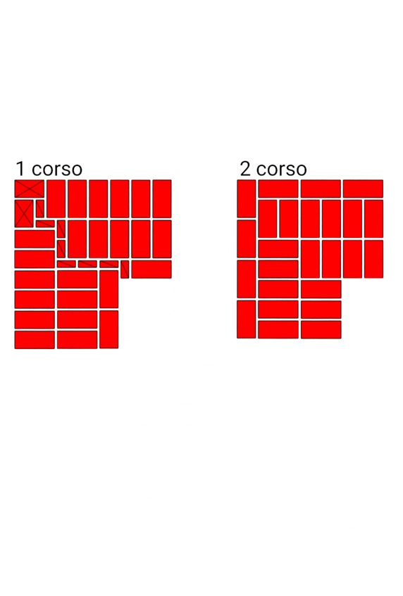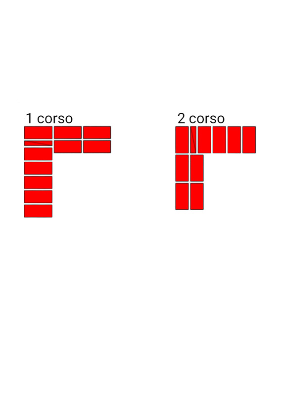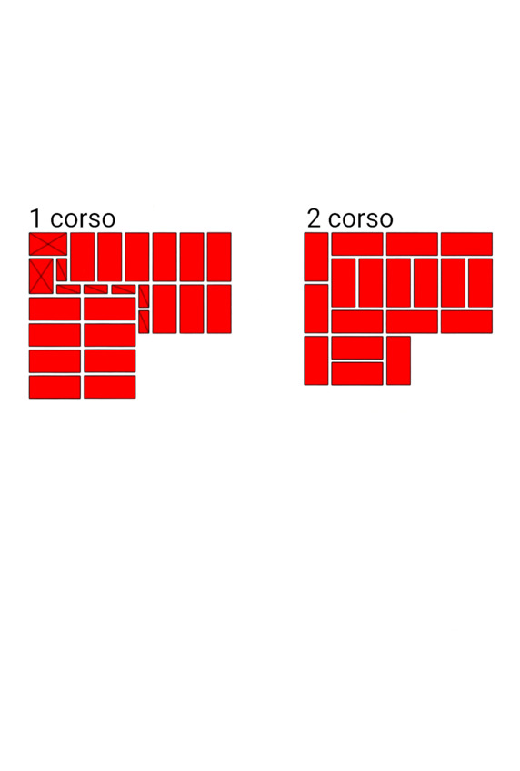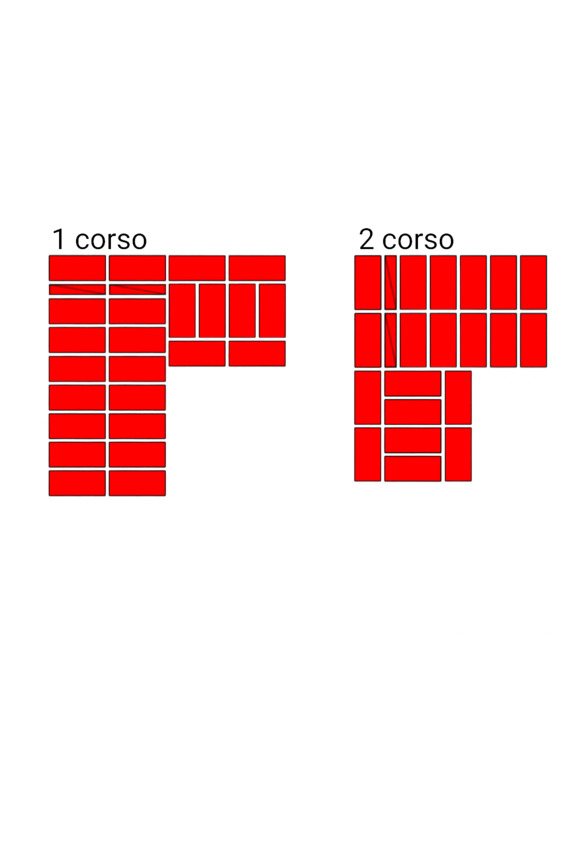 Fig.14. L’ordine di posare i mattoni all’incrocio dei muri. Lo spessore delle pareti è 2 e 2 mattoni.