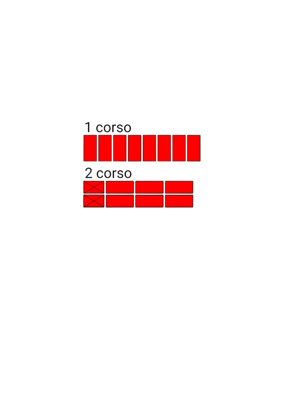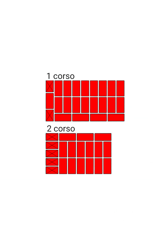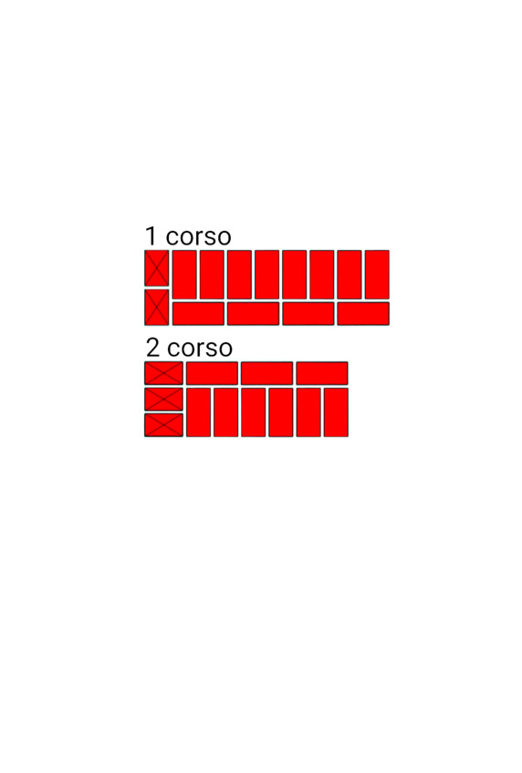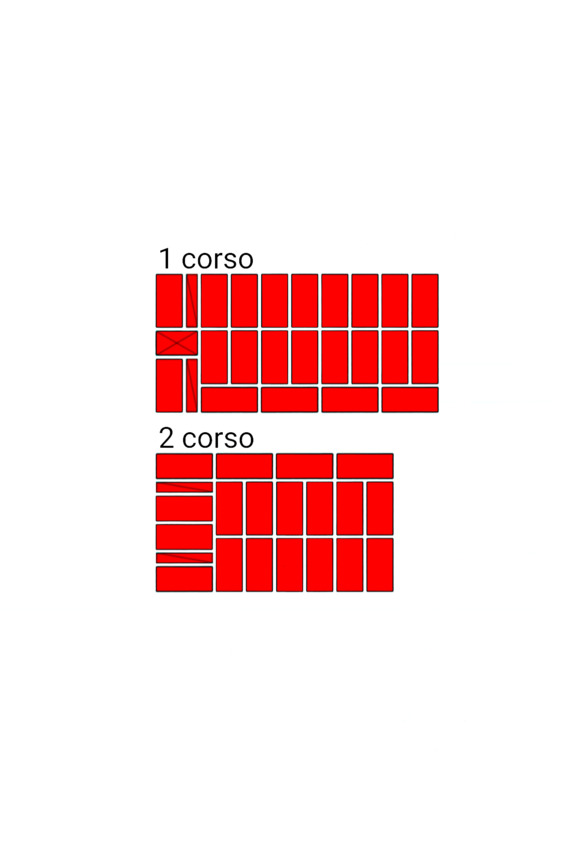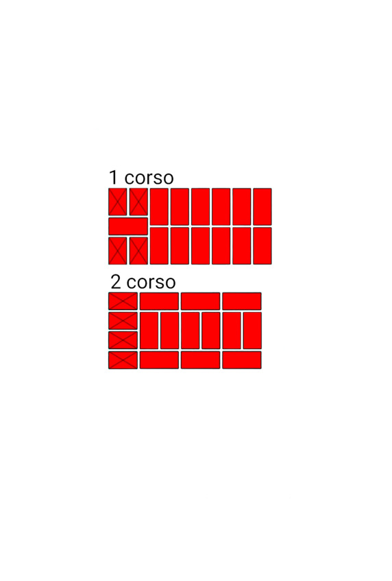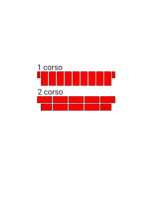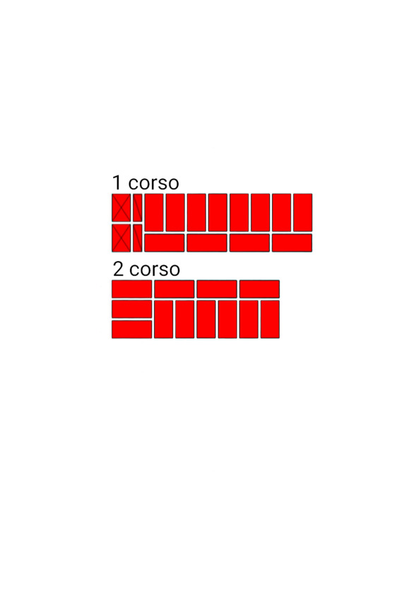 Fig.9. L’ordine di posa dei mattoni nel vincolo verticale del muro di mattoni. Spessore della parete 2 mattoni.