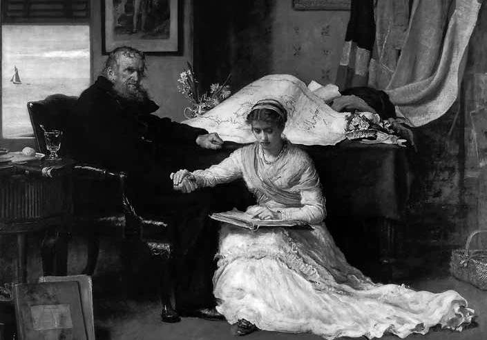 Рис. 2. Джон Эверет Милле. Северо-Западный проход. Галерея Тейт, Лондон. Картина одного из основателей Братства прерафаэлитов была написана в 1874 году, когда британские попытки поиска Северо-Западного прохода были давно заброшены и стали синонимом трагической неудачи. Герой картины – старый моряк, по-видимому, участник поисков Франклина – делится воспоминаниями молодости со своей дочерью. Милле не случайно обращается к больной теме – в это время в Англии ненадолго возобновляется интерес к Арктике, который год спустя реализуется в виде ещё одной малоуспешной экспедиции – Джорджа Нэрса