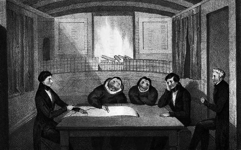 Рис. 5. Эскимосы рисуют карту на борту «Виктори». Автор рисунка – Джон Росс. Росс был первым из европейских полярных исследователей, кто установил дружеские контакты с жителями Арктики