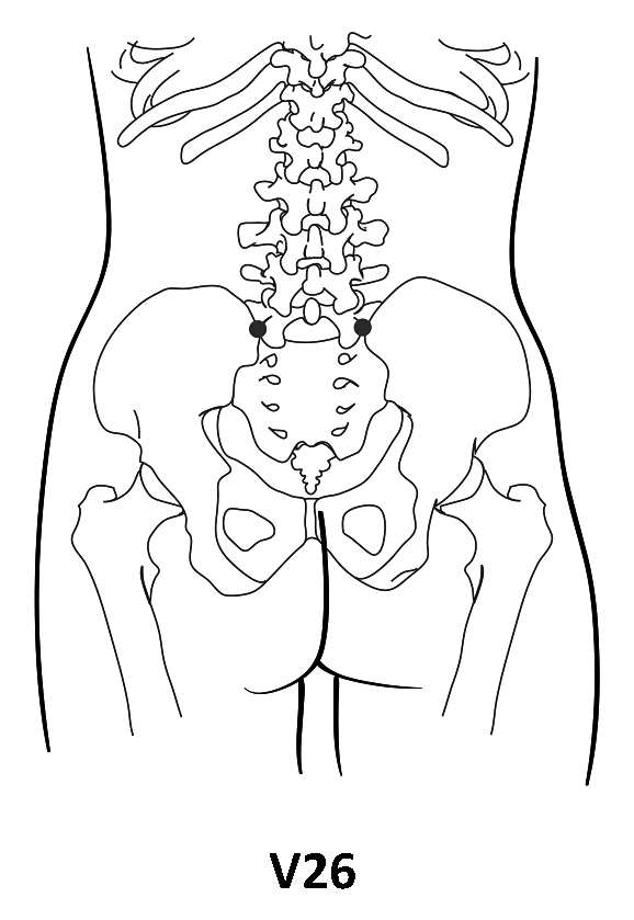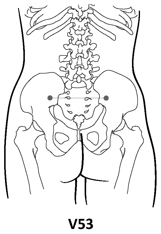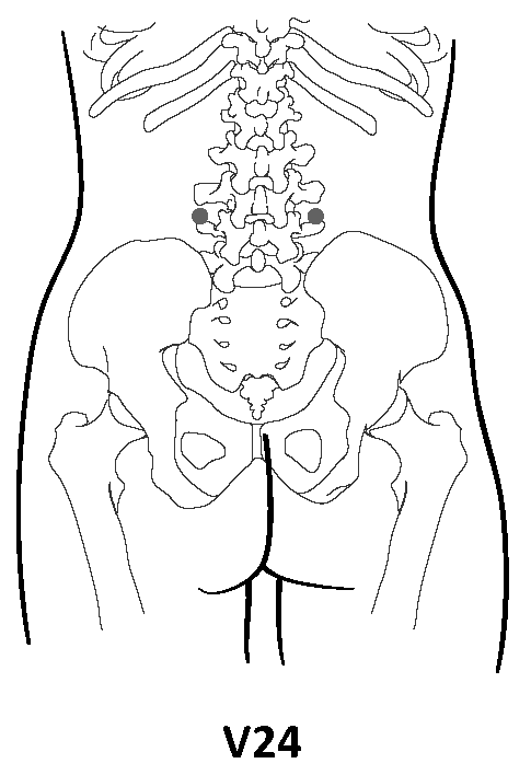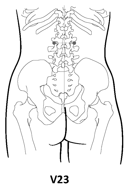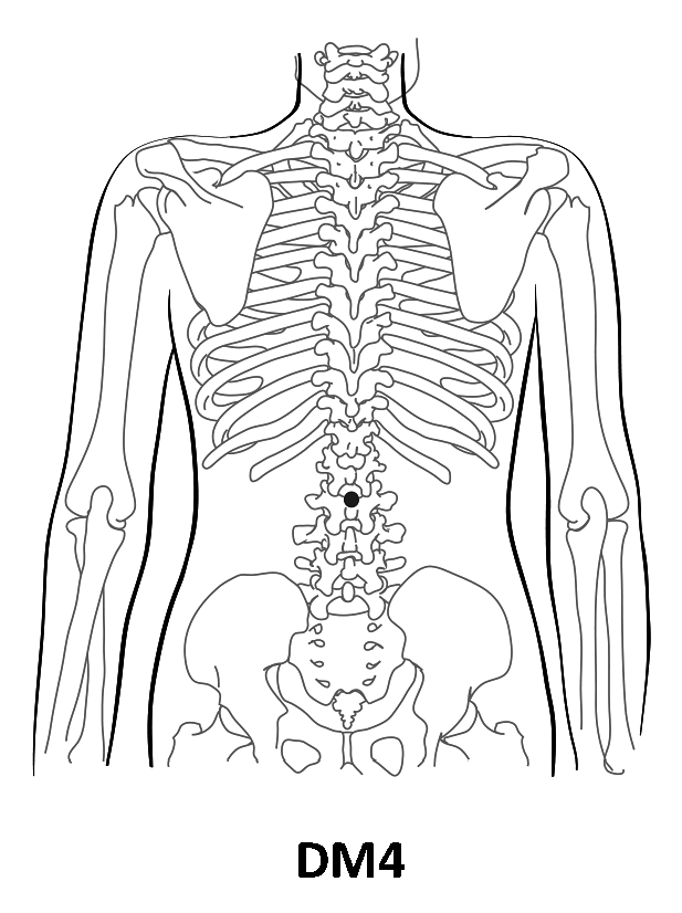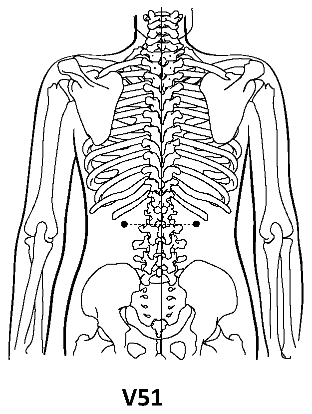 Начиная с первого поясничного позвонка, точки акупрессуры на спине укрепляют Ян субстанции Цзин: DM4, V51, V53 и V23.