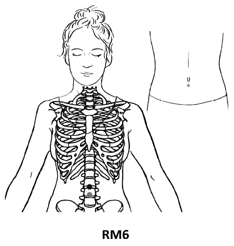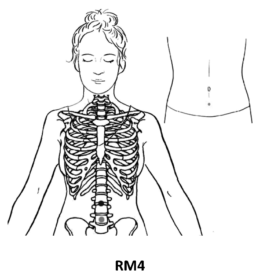 На животе точки, которые укрепляют Инь субстанции Цзин, находятся ниже пупка – на ширине ладони от него: RM4 и RM6.