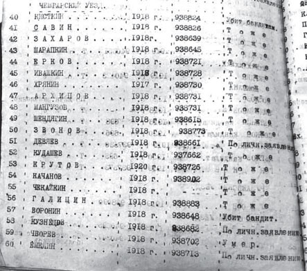 В ходе этого рейда антоновцы прошли по 13 волостям Чембарского уезда. Ими было убито около 200 чел., в т. ч. около 50 советских работников, сельских активистов и членов их семей, угнаны 500 лошадей, захвачено 6,1 тыс. пудов хлеба и 7 млн руб. Только в Тамбовской губернии разграблено более 60 колхозов. В д. Никульевка был замучен и зверски убит коммунист Т.С. Шендяпин – начальник милиции 1-го района Чембарского уезда. Статистические сводки на 31 декабря 1921 г. показывают большое число убитых разного рода террористическими группами членов РКП(б) Чембарского уезда.