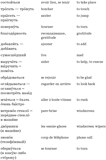 Ка́жется, она́ обра́довалась, и они́ вме́сте побежа́ли через доро́гу, огля́дываясь на мча́щуюся маши́ну. Шёл снег, и он заме́тил, что на ветрово́м стекле́ маши́ны рабо́тали дво́рники. Когда́ идёт снег, не о́чень-то хо́чется идти́ домо́й. «Подожду́ звонка́ и сно́ва вы́йду», – реши́л он, обора́чиваясь к ней. Но он поня́тия не име́л, о чём мо́жно с ней говори́ть и о чём нельзя́, и всё ещё разду́мывал, когда́ она́ сама́ сказа́ла: