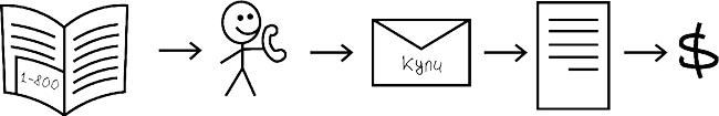 Рисунок 0.2: Современные воронки продаж в интернете практически идентичны воронкам маркетинга прямого отклика за пределами интернета, которые я изучал в детстве.
