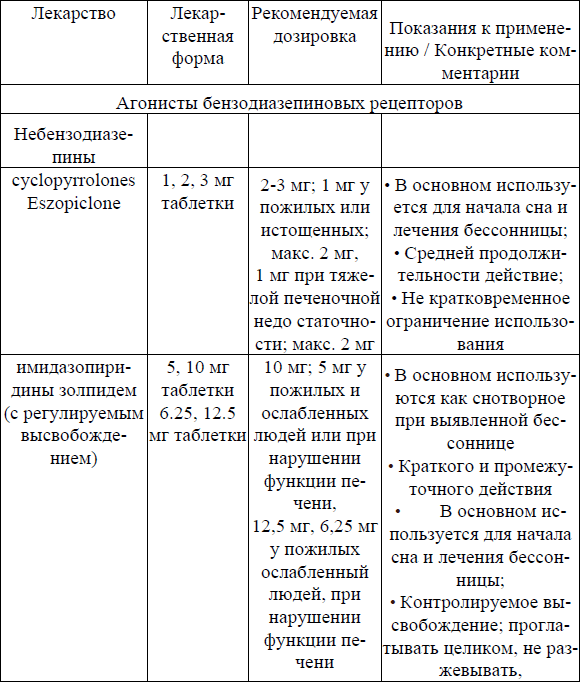 Агонисты бензодиазепиновых рецепторов (АБР) или Ramelteon: золписет, Eszopiclone, залеплон и темазепы.
