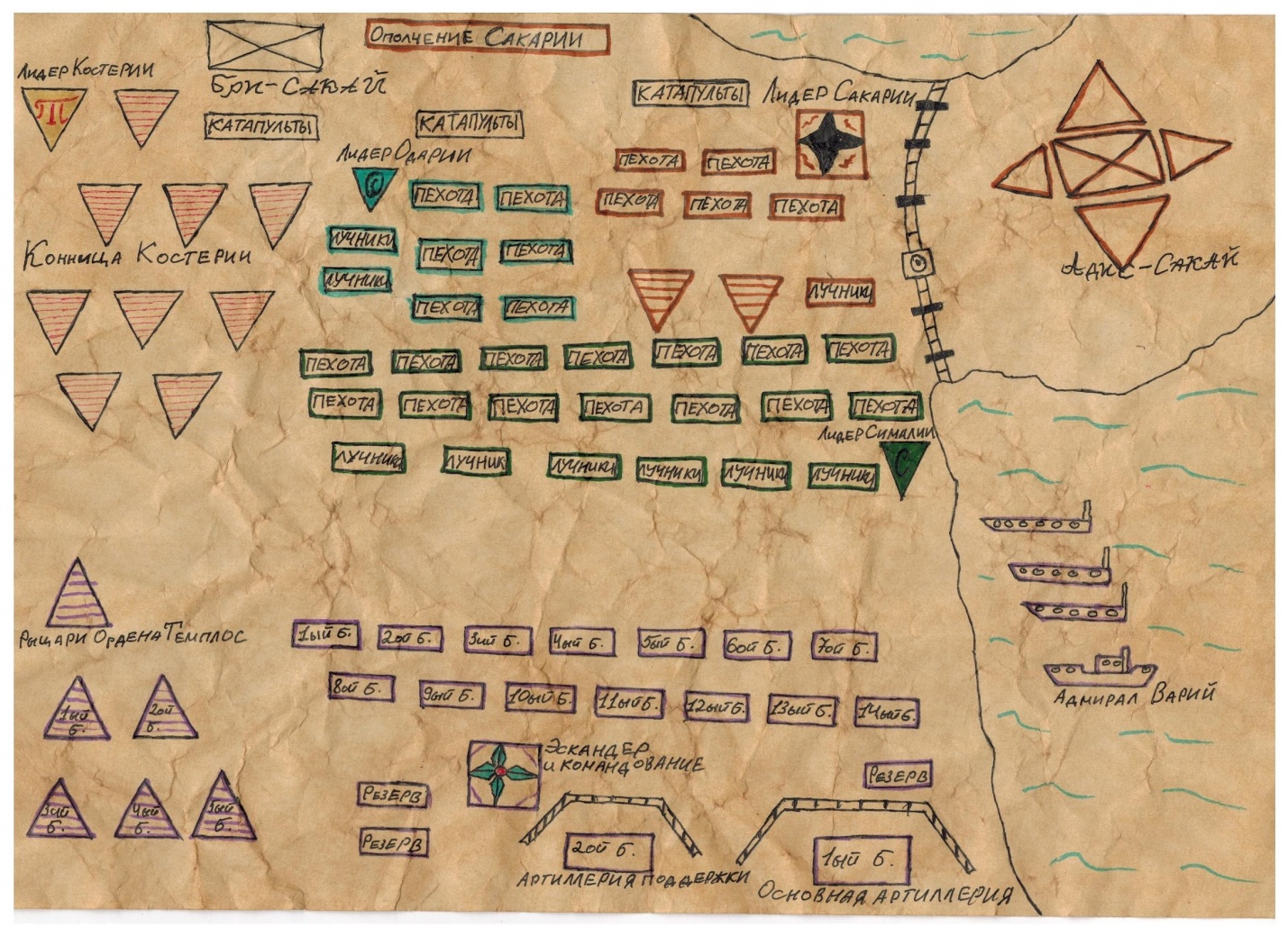 – Варий отправится вместе со своими броненосцами поближе к столице Сакарии. Мы с вами идём в Бри-Сакай. Нужно захватить этот городок и установить контроль над двумя переправами. После этого возьмём в осаду Адис-Сакай, но я бы ещё хотел дать солдатам передохнуть, поэтому перед походом на Бри-Сакай две недели покоя. И они, и вы это заслужили. Тем более через три дня праздник.