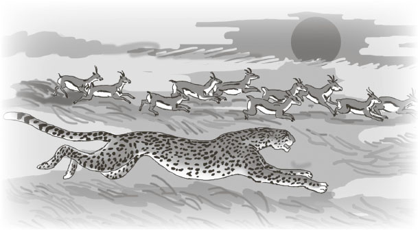 А кто самый быстрый зверь? Кто догонит даже длинноногого голиафа, пятнистого жирафа? Это быстроногий хищник гепард. Вот уж кто совершенный бегун! Он мчится как пуля.