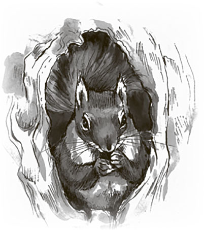 Мой друг воробей продемонстрировал белочке, как он купается в луже, разбрызгивая воду по сторонам, а белочка показала, как она хорошо плавает и даже переплывает реку. Этот маленький грызун очень любит грибы, и, что удивительно, даже ядовитые мухоморы ему по вкусу. Красная белка, как и воробьи, питается орехами, почками, зерном, плодами. На зиму делает запасники не только в дуплах, но и в земле. Там она прячет орехи, а зимой откапывает их из-под многослойного кома снега.