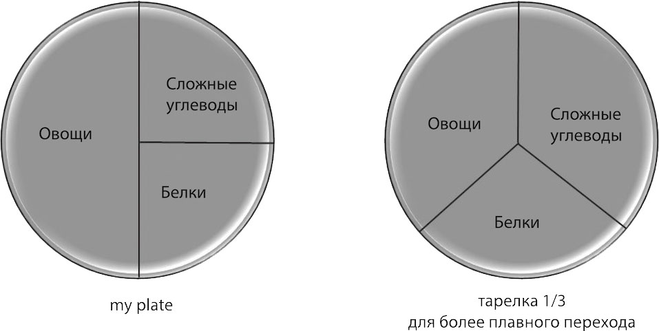 Желательно, чтобы трапез было как минимум три: завтрак, обед и ужин. Причем, даже если мы не сторонники овощей, и до сих пор в нашем рационе были только помидоры и огурцы (и то редко), можно начать вносить разнообразие постепенно. Например, для начала, разделить нашу тарелку на 1/3 каждого из компонентов. Это будет менее пугающе и более выполнимо.