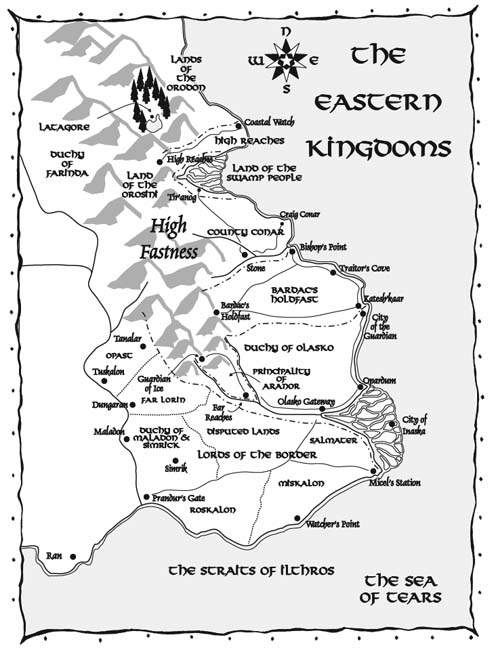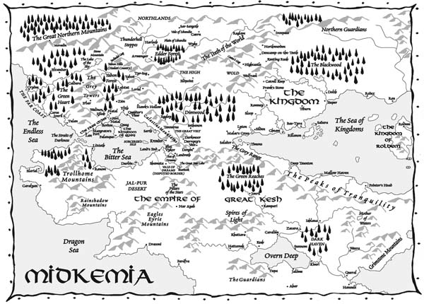 ‘I think we’re still in the same place,’ said Nakor. ‘I mean, an analogous place, as when we travelled to Kosidri.’ Pug, Magnus, and Nakor had discovered that on the other planes of reality the worlds were identical, or at least as much as the variant conditions of that reality permitted. So wherever they were was a world similar in geography to Midkemia. ‘But I think the energy state here is going to prove troublesome soon.’