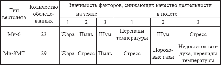 Таблица 2.11 – Влияние факторов на качество выполнения полетного задания на различных типах вертолетов