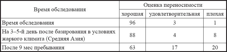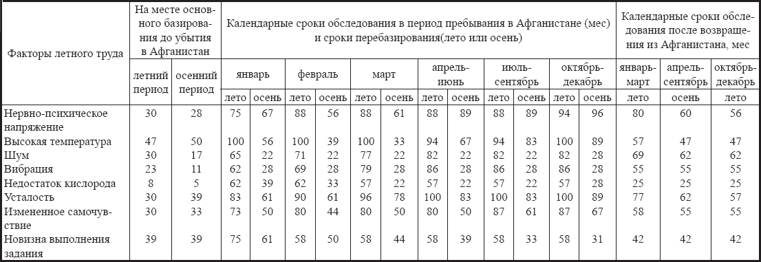 Данные изучения динамики психофизиологического состояния, летного состава в течение всего периода выполнения деятельности в экстремальных условиях Афганистана в зависимости от сроков замены в различные сезоны года показали, что замена в летний период (в июне-июле), в самый пик температурных условий, по сравнению с осенне-зимним периодом характеризуется наиболее выраженными неблагоприятными проявлениями.