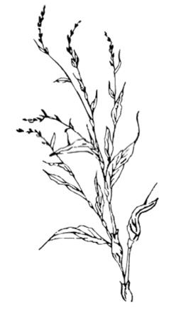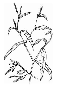 Его называют еще водяным перцем. Однолетнее травянистое растение до 70 см высотой, с тонкими корнями и ветвистыми, полыми, внизу часто укореняющимися зелеными стеблями, к осени обычно краснеющими. Местообитание: топкие берега рек, озер и прудов, заболоченные места, сырые луга и рощи. Часто как сорное растение встречается в населенных пунктах – в сырых канавах, по сырым полям. Горец перечный содержит витамины А, D, E, K, аскорбиновую кислоту, органические кислоты.