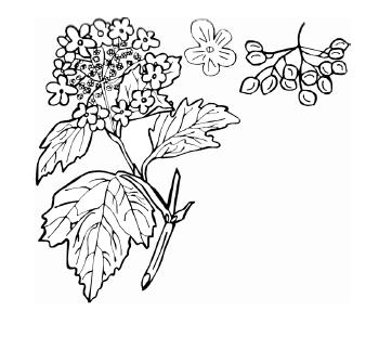Кустарник с широкими трех-пятилопастными крупнозубчатыми листьями и щитовидными соцветиями белых цветков. Цветки пятилепестные. Плод – красная шаровидная костянка с одной плоской косточкой. Цветет в мае-июне, плодоносит в августе – сентябре. Растет в подлеске смешанных и лиственных лесов, в кустарниковых зарослях, по оврагам, берегам рек и склонам гор.