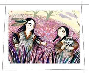 Едва только перебрались они через реку с красной водой, ливень догнал их. Он лил всё сильнее и сильнее. Маленький Цветок подбадривал Белую Кукурузу и просил её бежать быстрее: до дома оставалось совсем немного.