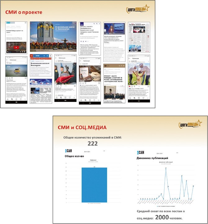 В основе проекта лежит идея единства, нерушимости и мощи военно-патриотических сил России, которые на протяжении веков шаг за шагом одерживали сокрушительные победы над врагом, пытающимся завоевать нашу землю. Отсюда и название – «Шаги Победы».