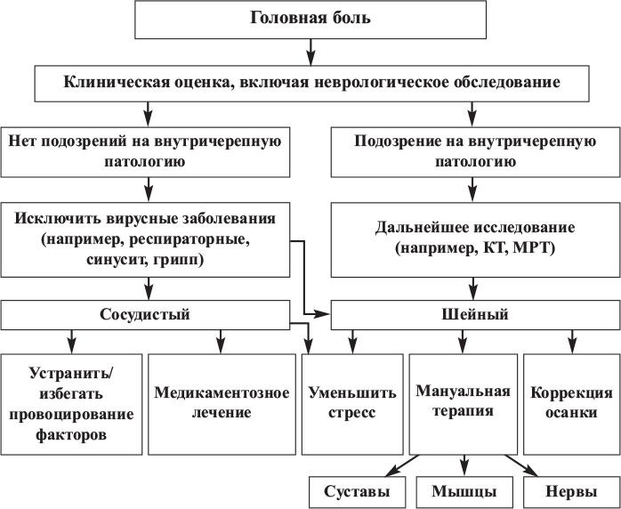 После исключения трех первых источников головной боли следует иметь в виду, что большинство оставшихся причин связано с нарушениями функционирования сосудов, например, при мигрени, или суставов и/или мышц шеи. Классические типы сосудистой и шейной головной боли имеют характерные для каждого из них признаки, хотя часто могут присутствовать симптомы обоих этих типов.