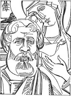 А каким величественным и родным предстаёт Волошин, словно сошедший с античных ваз бог (по описанию Марины Цветаевой – Зевс). Кажется, он сам полон гомеровских дум… Однако – одеяние библейского покроя (его парусиновый балахон), меняя времена, моим воображением переносит поэта на грандиозное полотно Александра Иванова…