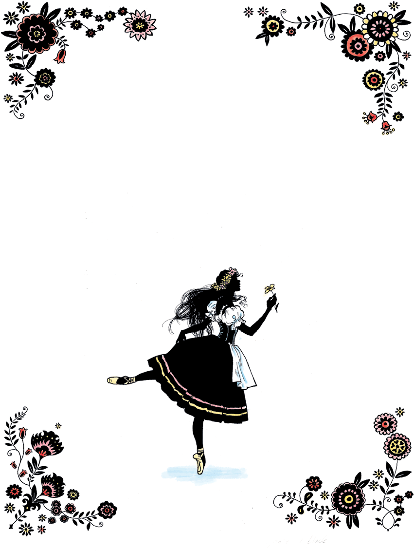 Они попробовали, но при этом младшая умудрилась запутаться в подоле собственного длинного платья. Танцмейстер подхватил её под руку, чтобы она не упала. Тут старшая сестра так раззавидовалась, что нарочно споткнулась, чтобы танцмейстер уделил внимание и ей! Но танцмейстер решил на этом закончить урок и вежливо откланялся.