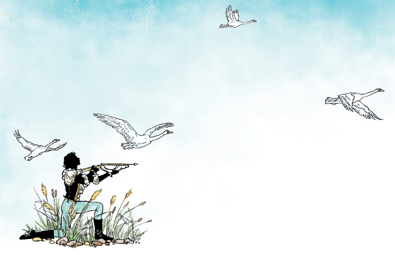 Присев среди камышей, Зигфрид смотрел на неподвижные воды озера, сверкающие в серебряном свете луны. Он ждал; арбалет лежал рядом наготове. Затем он заметил лебедей, скользящих в тишине по гладкой поверхности озера. Уверенной рукой он натянул арбалет и прицелился.