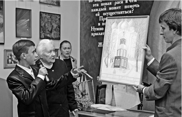 О своей картине «Во все года, во все века, в борьбе и трудностях стояла Русь, черпая силы в Святости Своей» рассказывает Никита Лаврентьев (13 лет, Омск)