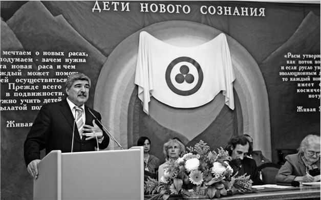 От имени Российской академии космонавтики разрешите поздравить уважаемое собрание с днем рождения Николая Константиновича Рериха. Разрешите также поздравить с открытием конференции, к теме которой академия космонавтики далеко не безразлична, как и к замечательной выставке детских рисунков.
