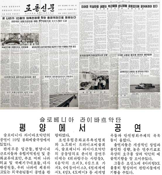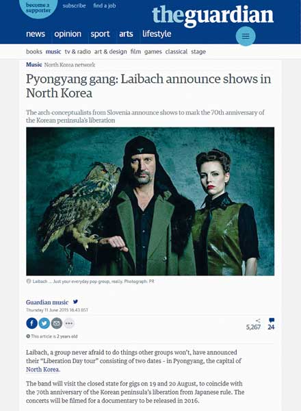 «Словенская группа Laibach выступила в художественном театре „Понхва“ 19-го числа. Концерт посетили работники сферы искусств, служащие из Пхеньяна, участники дружественных европейских делегаций по культурному обмену, представители различных дипломатических и международных организаций, члены посольств зарубежных стран и экспаты, живущие в Корее.