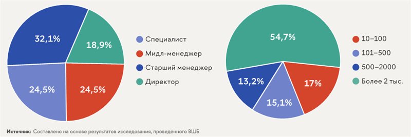 Позиции респондентов в организации и численность сотрудников
