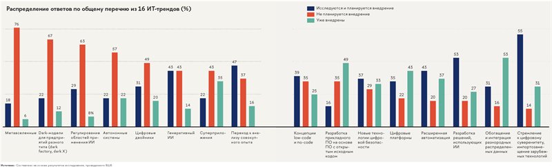 В июне – сентябре 2023 года Высшая школа бизнеса НИУ ВШЭ провела первое исследование ИТ-трендов, характерных для отечественной экономики. Как показал опрос, они значительно отличаются от главных глобальных трендов.