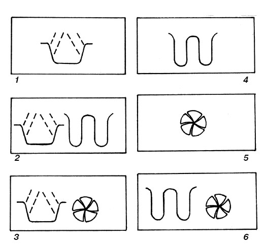 1. Как уже говорилось, в разных частях камеры продукты прогреваются по разному, при этом в центре вращающегося подноса прогрев минимальный. Поэтому ближе к краям подноса располагают более плотные и крупные куски продукта с длительной термической обработкой, а к центру подноса – более мелкие и нежные продукты, например, овощи, готовящиеся быстрее. При таком расположении наибольшее количество микроволн получат более крупные куски и, следовательно, лучше прогреются (рис. 7).