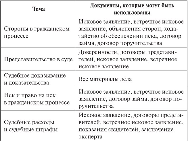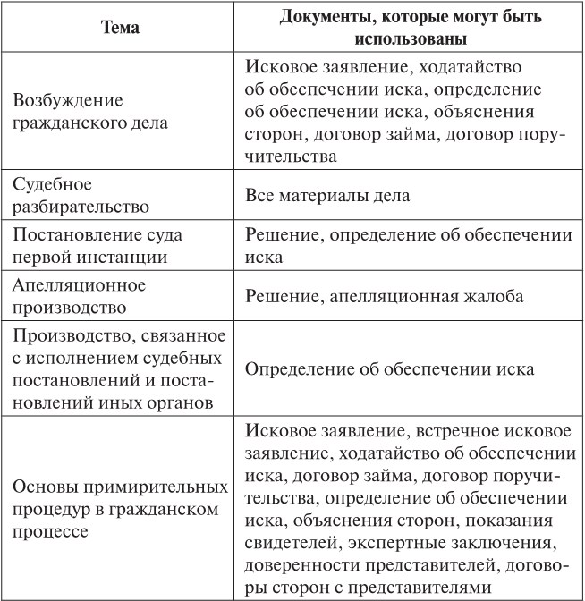 Представляем Вашему вниманию схему-таблицу возможного использования документов пособия в рамках курса «Гражданский процесс».