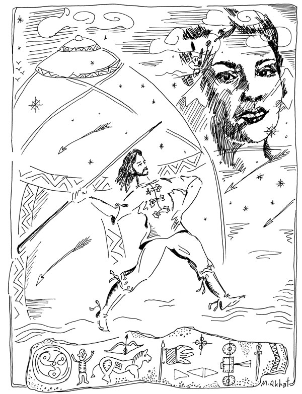Сылукыз трудилась над шкурой, когда где-то вдали послышался лай собак. Она насторожилась. Да, внизу, в дальнем конце большого аула, похоже, что-то происходит. Женщина надела шубу и вышла из дома. Глядя в ту сторону, откуда доносился потревоживший её лай, она принялась вслушиваться. Грустно молодой женщине одной, очень грустно. Ужасно скучая, она целый день ждала кого-то. Шла ли к роднику, доставала ли дрова, направлялась ли по делу к дому свёкра, глаза её обращены были к югу, в голубовато-сизую даль, куда убегала гряда гор. Тот, кого она ждала, должен быть там, среди загадочных, навевающих печаль кряжей. И ждала она не кого-нибудь, а любимого мужа своего Мамака.