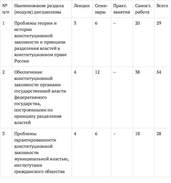 4) овладение студентами умением вести дискуссии по проблемам реализации принципа конституционной законности в системе разделения властей, в жизнедеятельности гражданского общества, решать конкретные задачи в обозначенной сфере.