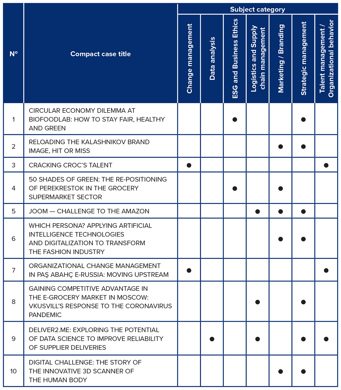 The collection covers a wide range of topics including Entrepreneurship, Strategic Management, Business Innovation, ESG and Business Ethics, Supply Chain Management, Brand and Talent Management. Furthermore, some cases considered such “hot” topic as the features of management during the COVID-19 pandemic.