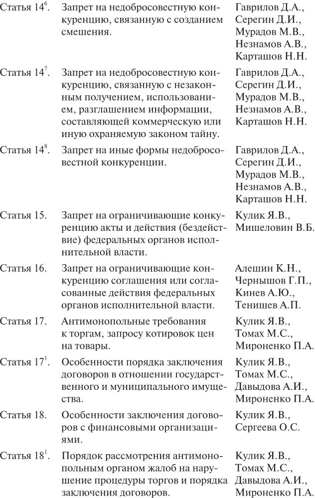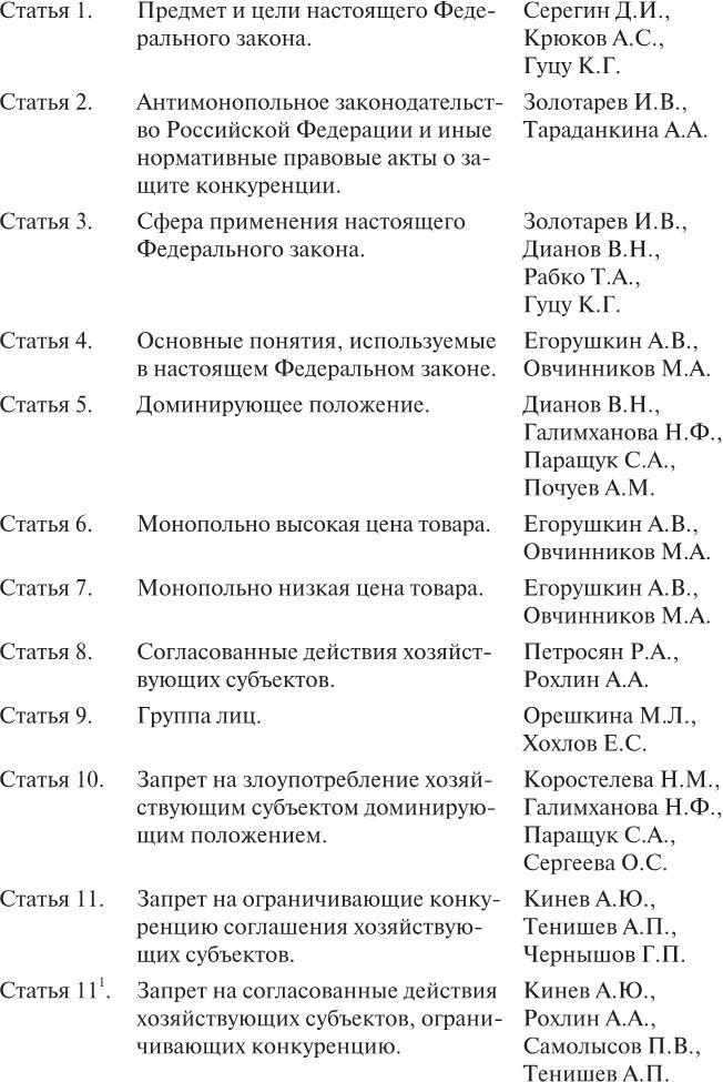 Совместная работа авторов – ученых и практиков, государственных служащих и частнопрактикующих специалистов – на независимой академической площадке позволила представить сбалансированную точку зрения на многие спорные вопросы, возникающие при применении Федерального закона «О защите конкуренции», с учетом новейших тенденций российской и международной антимонопольной практики.