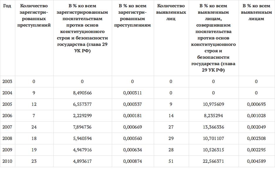 Данные официальной статистики свидетельствуют о том, что преступность, связанная с организацией экстремистского сообщества, вплоть до 2010 г. имела тенденцию роста, что наглядно демонстрируют таблица 1 и диаграмма 1.