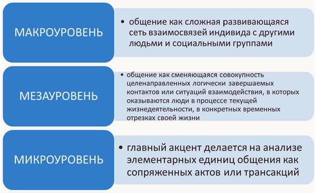 Уровни общения, по Б.Ф. Ломову[4]: yy макроуровень – общение индивида с другими людьми в соответствии со сложившимися общественными отношениями, традициями, обычаями;