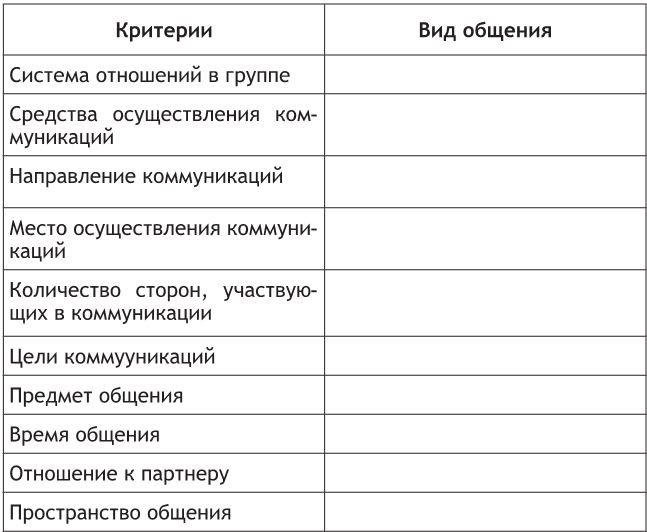ПРАКТИЧЕСКИЕ ЗАДАНИЯЗадание 1. Укажите вид общения по критериям классификации